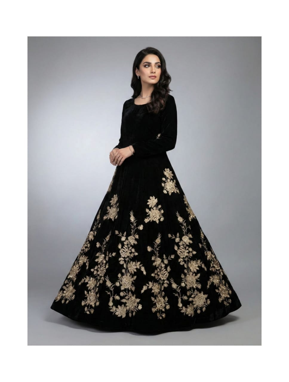 Manal Velvet Gown, crafted in rich velvet with exquisite embroidery. A timeless luxury gown perfect for weddings, evening events, and formal occasions.
