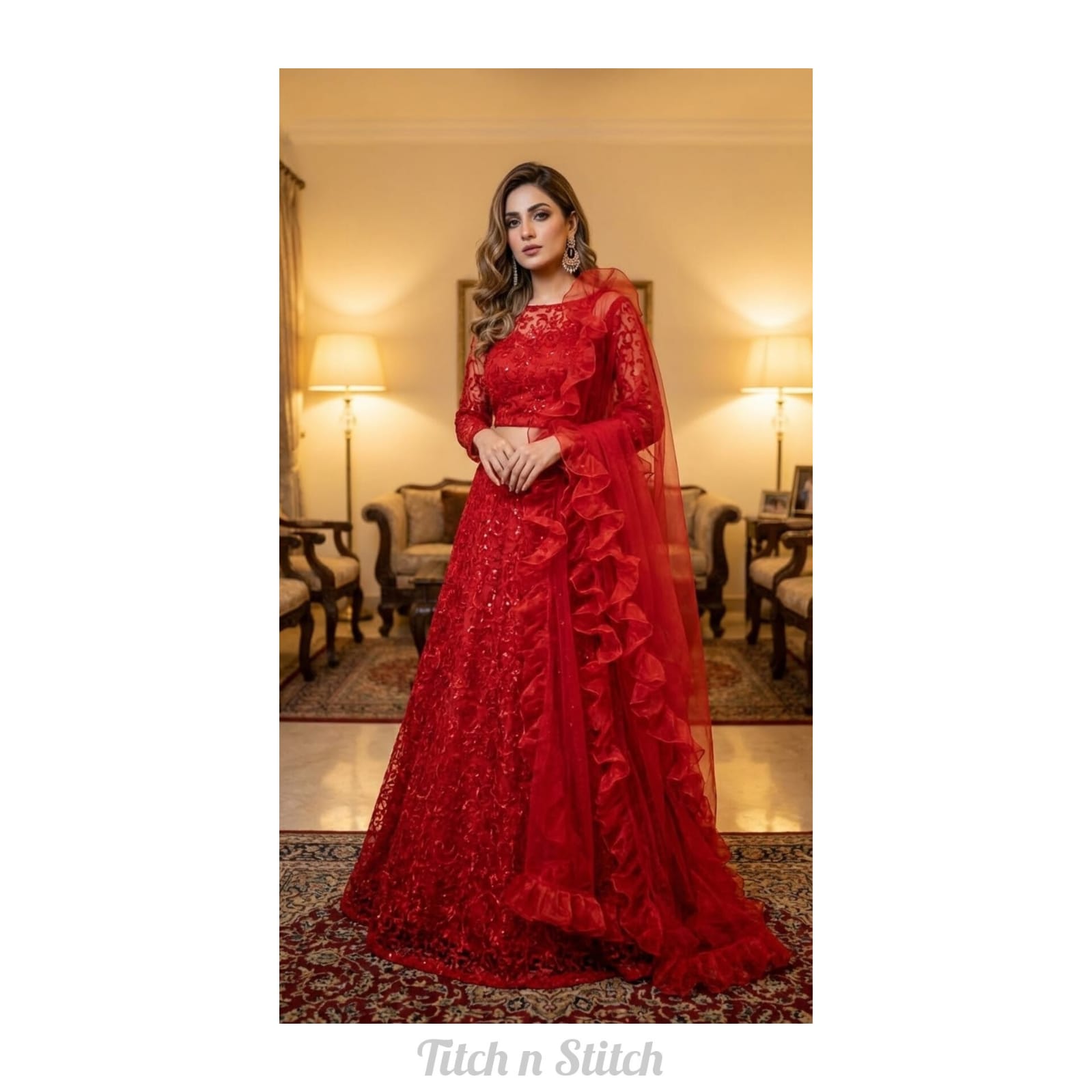 RUBY by Titch n Stitch — a luxurious embroidered net formal ensemble crafted for women who appreciate classic beauty with a modern touch